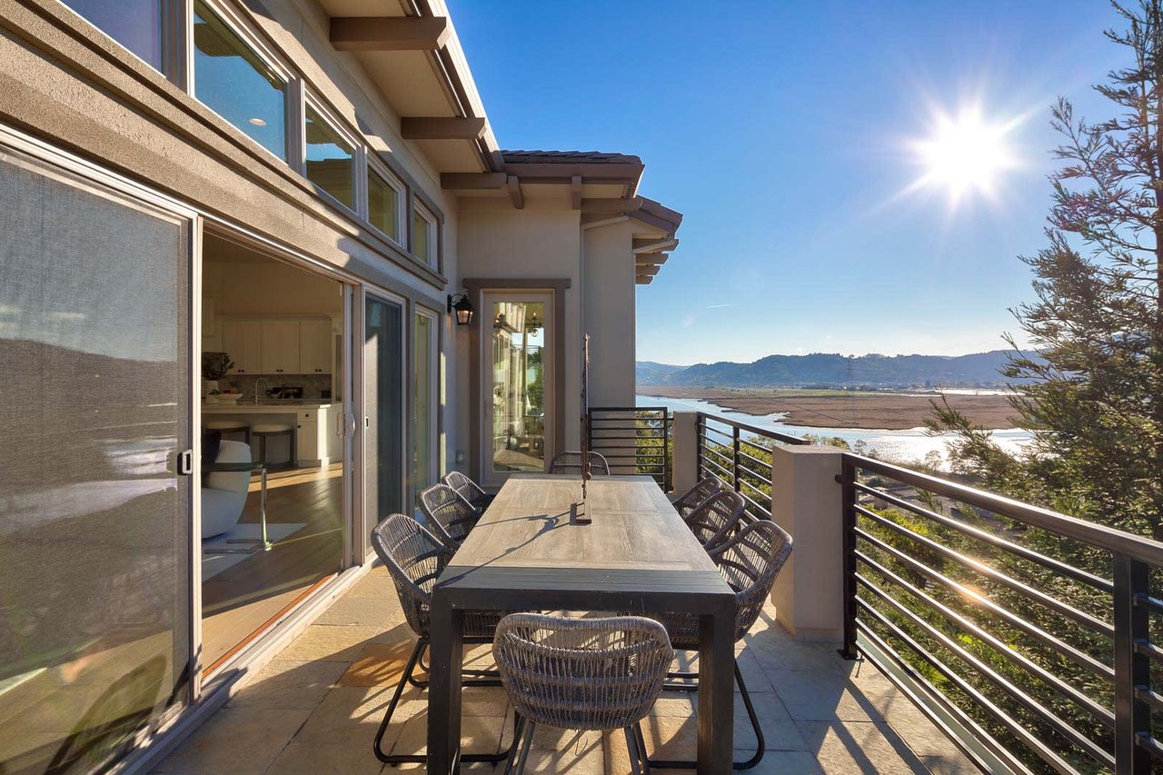 Nestled by rolling hills & open space, this recently constructed smart home features breathtaking and unparalleled views of Mt. Tam & the bay. All within walking distance to the bustling Marin Country Mart, the Larkspur Ferry Terminal, SMART train, stunning hiking & biking trails. This opulent contemporary traditional home was custom built in 2018 featuring 4 spacious bedrooms, 4 full bathrooms & a half bath comprising of 3,975± square feet on a .28± acre private lot. Upon entry you are greeted by an enchanting foyer offering 22’+ soaring ceilings in the grand glass staircase area. The desired & coveted open floor plan with great scale, ideal and seamless indoor-outdoor flow boasts an irresistible social flow throughout the property.